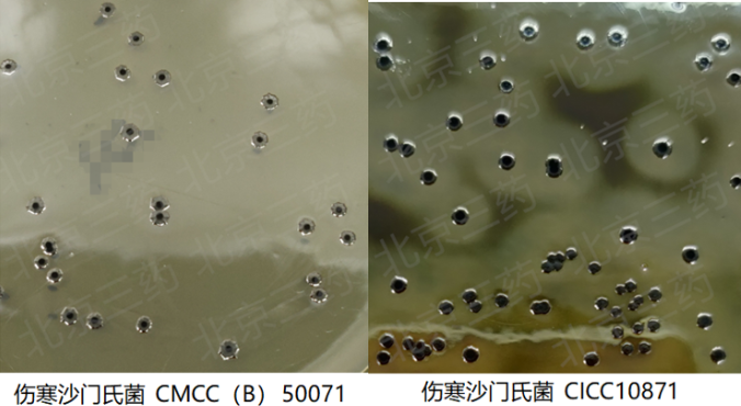 置于36℃±1℃,培養40h時(shí)觀(guān)察產(chǎn)生金屬光澤的情況。