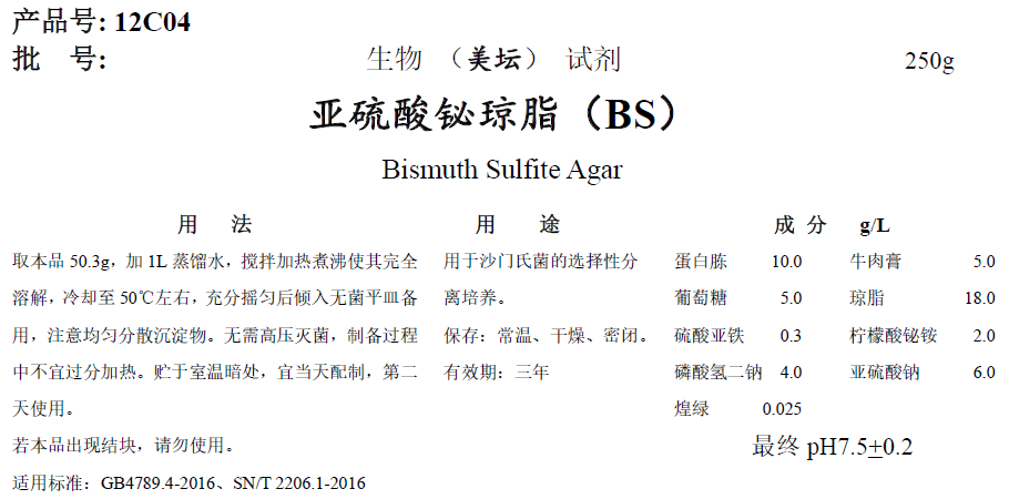 BS瓊脂培養基質(zhì)量要求