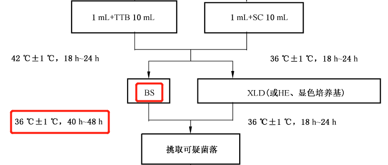 該培養基中蛋白胨、牛肉膏為細菌生長(cháng)提供所需的氮源、營(yíng)養物質(zhì)等;葡萄糖作為碳源;磷酸氫二鈉為培養基緩沖劑;煌綠和亞硫酸鈉可抑制大腸桿菌、變形桿菌和革蘭氏陽(yáng)性菌的生長(cháng),但對沙門(mén)氏菌的生長(cháng)無(wú)影響;傷寒沙門(mén)氏菌和其他沙門(mén)氏菌可利用葡萄糖,將亞硫酸鹽還原成硫化物并與硫酸亞鐵反應使得菌落呈黑色,同時(shí)將鉍離子還原成金屬鉍使菌落呈現金屬光澤;瓊脂為凝固劑。