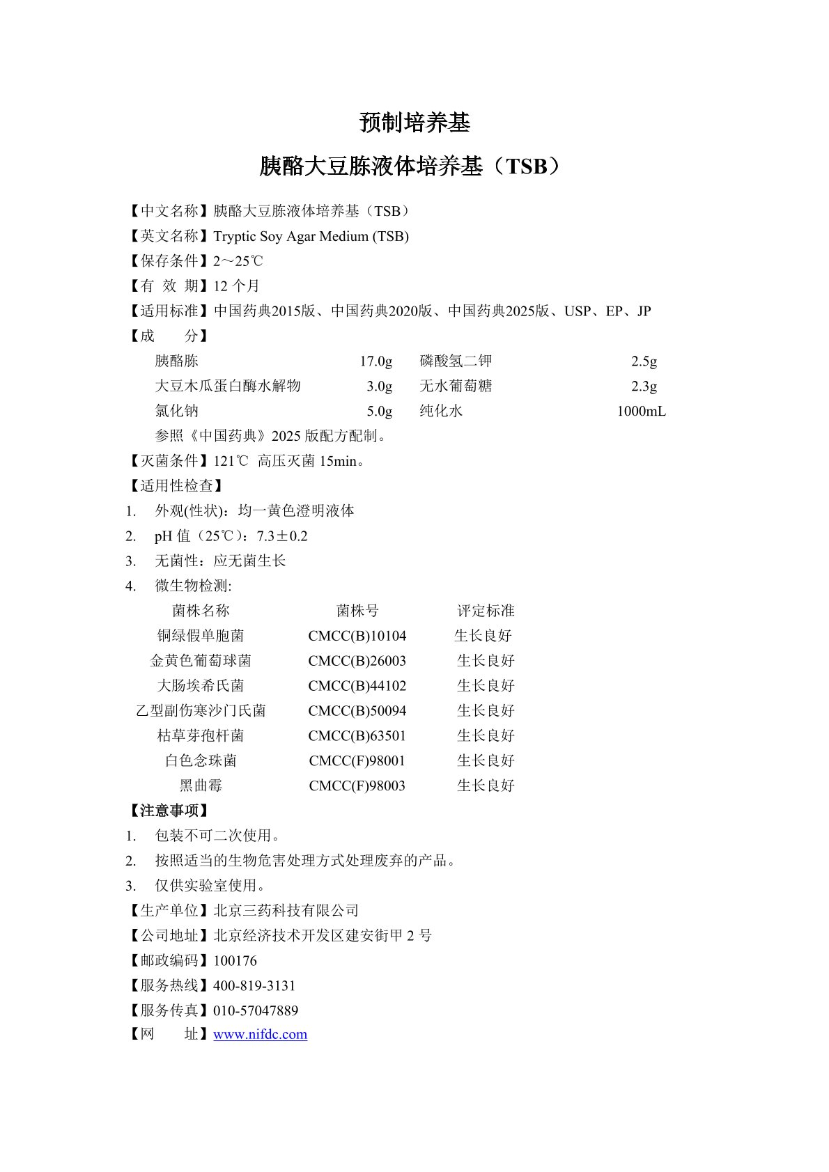 | 中文名稱(chēng) | 胰酪大豆胨液體培養基(TSB) |