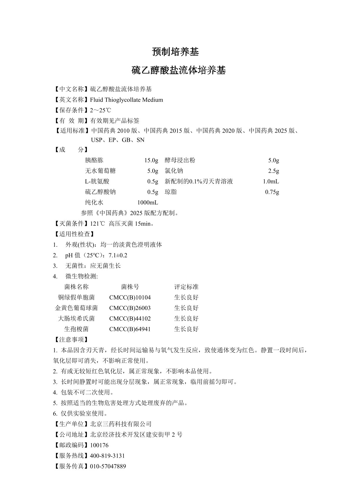 | 中文名稱(chēng) | 硫乙醇酸鹽流體培養基 |