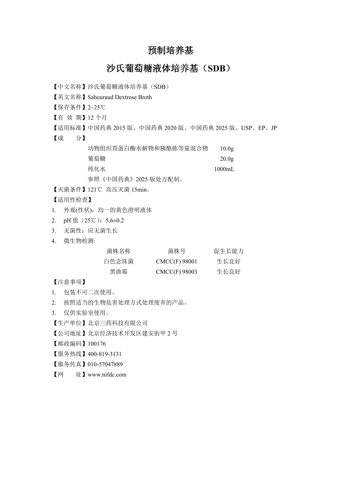 | 中文名稱(chēng) | 沙氏葡萄糖液體培養基(SDB) |